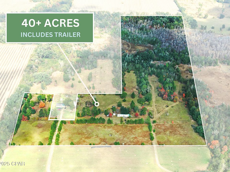 40 acres in the Country with a mobile home thrown in!! This parcel is fenced and crossed fenced in some sections. Open in others. The property has power (West Florida Electric) water (well water) and septic. Great for recreational activities such as hunting, horseback riding, ATV or just to get away. The mobile home is livable as a main home or used as a camp to retreat. The land has a mixture of trees, nature areas as well as pasture. Many opportunities are ahead for whoever sees the vision first. Call today!!