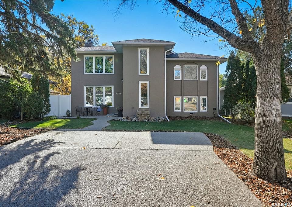 Unique Lakeview Residence in a Premiere Location! Wascana Park, the Norman Mackenzie Gallery and Great Schools are all within walking distance. Enter the inviting foyer that leads into a spacious living room with its feature fireplace and display shelves, overlooking a sunroom with huge south-facing windows that fill both rooms with beautiful sunlight all year round. The perfect powder room is conveniently tucked away off the sunroom. Step down into the versatile family room, dining room and kitchen combination—fantastic for entertaining or daily family life. The gorgeous custom kitchen features quartz countertops, stainless steel appliances including a gas stove, an abundance of cabinets, and an immense sit-up island. This open area also has dual-aspect windows to capture natural light throughout the day and walks out to the back patio, while the sunroom opens to the deck—creating a seamless indoor-outdoor living experience. Upstairs are the first three bedrooms and a family bath, with one bedroom large enough to serve as a second primary suite. A few steps up are two more bedrooms. The main primary bedroom features a lovely fireplace, a spa-inspired ensuite, and access to a large private balcony overlooking the yard. The bedroom near the primary suite would be an ideal office or nursery. The lower level offers laundry facilities and a long row of built-in cupboards for all your storage needs. The backyard is private and spacious, featuring a detached heated garage with a bonus 13'4" x 20' loft/studio above. Outfitted with a rubber floor and mirrored wall, it’s perfect for a gym, yoga or dance studio, home office, or creative space. The front of the home offers an exposed aggregate double driveway for additional parking, plus space in the backyard for a playset or additional parking if desired. New Furnace 2025, Shingles 2018, 2 x 100 Amp Panels, 220 Garage Service. Book your private showing today to experience this truly one-of-a-kind Lakeview property!
