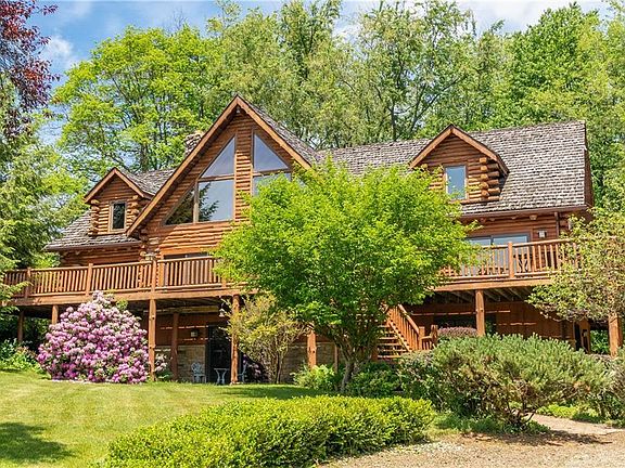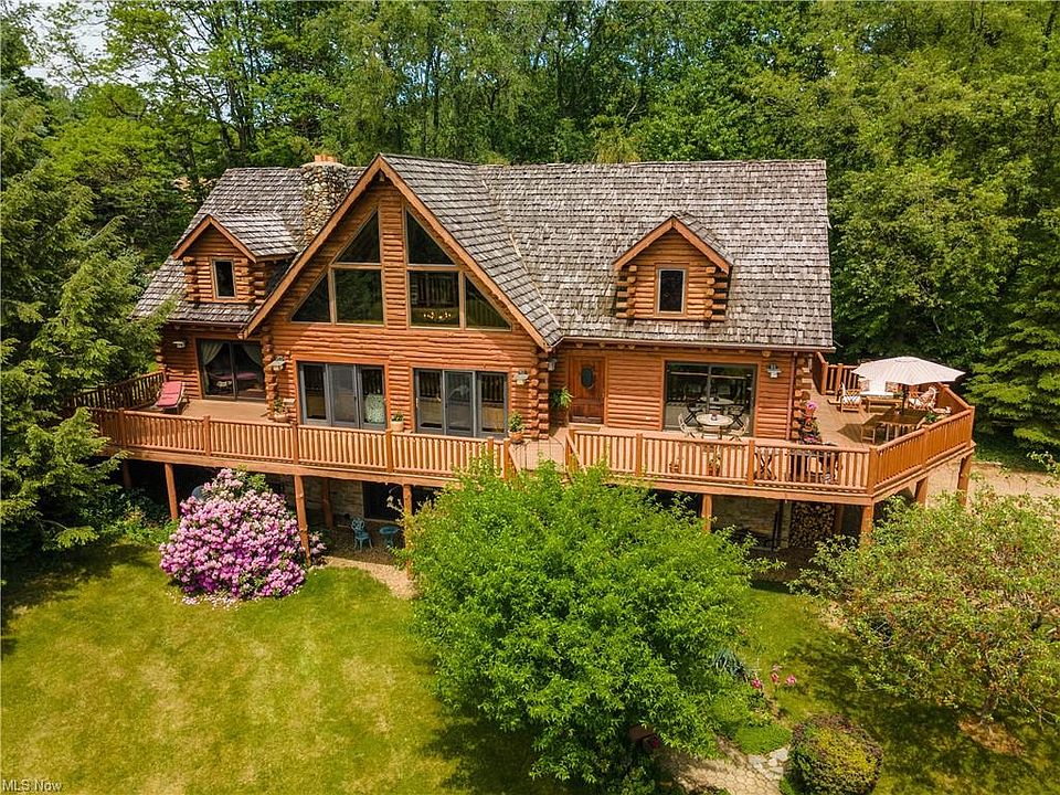 This charming custom-built log home has been lovingly maintained and is ready for it's new owners. Outside features include a beautiful wraparound deck, a hand carved Cherry front door, and a circular driveway for extra parking. Upon entering, you'll be enamored with the floor to ceiling windows, the cherry flooring and the over-sized stone fireplace in the great room. The kitchen and dining areas feature Schrock cabinetry, imported Saltillo tile flooring and colorful counter, island and backsplash tiles imported from Puerto Vallarta. You'll be pleasantly surprised at the size of the master bed, bath and walk-in closet. The master also has a gas fireplace perfect for those chilly nights! There is another bedroom and full bath on main level. Loft area has reading nook, bedroom and bath. Cozy lower level includes a large family room with wood burning fireplace, a 4th bedroom and a half bath. Call today for your private showing!