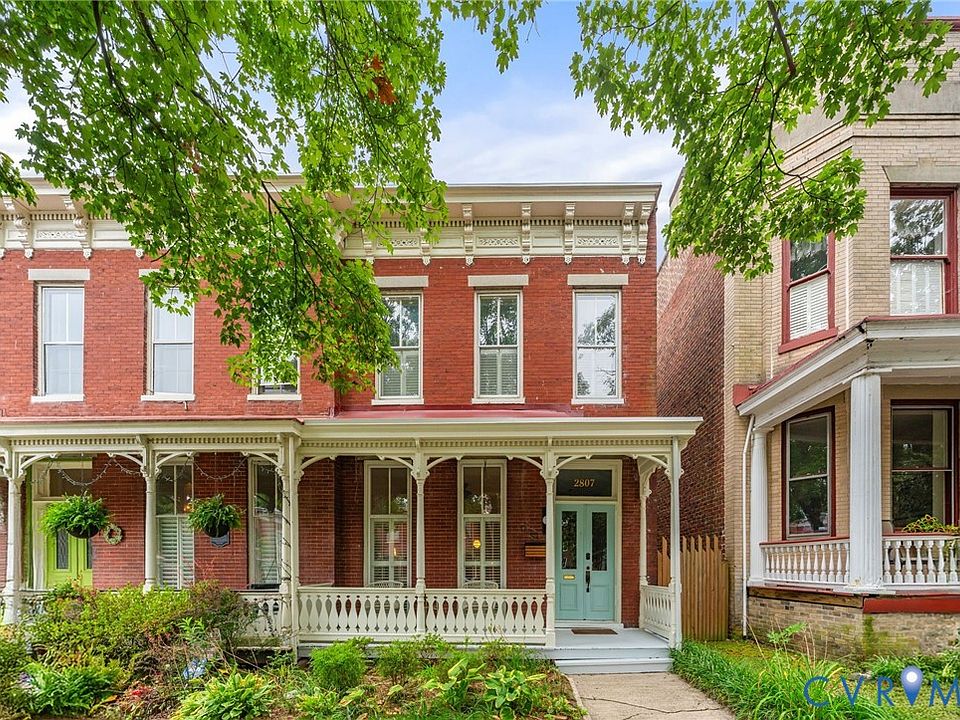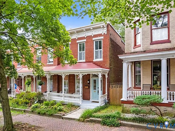 This handsome Italianate rowhouse, built c.1884, is a gem in the heart of the St. John’s Church Historic District. Set along a postcard-perfect stretch of East Grace Street, the home features full-length front windows with original wavy glass and views of one of Church Hill’s most desirable blocks. Inside, the formal living and dining rooms boast 10-foot ceilings, original Southern pine floors, and 19th-century mantels that echo the home’s rich past. The spacious kitchen has been beautifully updated with tall cabinetry, crown molding, quartz countertops, tile backsplash, stainless steel appliances, farmhouse sink, recessed lighting, and a half bath. Step from the kitchen to a covered porch, bluestone terrace, and private garden—ideal for entertaining or quiet evenings. Upstairs offers two large bedrooms, a tiled bath with walk-in shower, a generous trunk room or walk-in closet, and a laundry/bonus room perfect as an office or guest space. The fenced backyard includes a storage shed and rare off-street parking for two cars via a cobblestone alley. Additional upgrades include two tube skylights, a brand-new roof, and new HVAC. Just a block from Chimborazo and Libby Hill Parks and steps to Church Hill’s favorite restaurants and cafés.