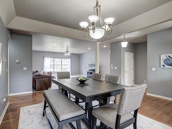 Wonderful 3 bed/2 bath home located just off Zora Street in North Joplin! This split level property offers over 2300 SF, hardwood floors, stainless appliances, a bonus room, and a full privacy fenced yard with storage shed! Inside, discover a formal dining room right off the foyer that opens to the living room w/gas fireplace. The kitchen features wood cabinets, includes all stainless appliances, and a breakfast nook. The primary bedroom has tray ceilings and an attached bathroom with dual sink vanity, jetted tub, skylight, walk-in shower, and large walk-in closet. 2 more bedrooms share a full hall bathroom. Up a short flight of stairs is a large bonus room with almost 400SF. The backyard is perfect to relax in with a covered porch and patio area. New dual HVAC and water heater (2021).
