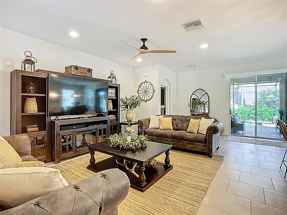 Peek-a-boo lake viewsAbundant natural lightGorgeous screened-in heated poolLush tropical landscapingTray ceiling detailSpacious covered lanaiOpen-concept floorplan