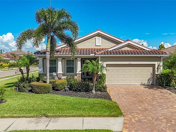 Meticulously maintained. Better than new. Job transfer forces sellers to leave their dream home with over $98,000 in after-market upgrades, creating a rare opportunity for one LUCKY BUYER as home is loaded with over $98,000 in recent upgrades—including an exquisite front door with a lifetime warranty, water filtration system, French drain system, and much more (see attached list). This is the home EVERY BUYER WANTS—the highly sought-after open-concept floorplan where the great room, kitchen, and dining area form this huge, fantastic gathering space. And it has all the ‘ON-TREND’ FINISHES buyers can’t get enough of—neutral floors, neutral paint, warm wood shaker cabinetry, timeless neutral tile baths, brushed nickel accents, and Santa Cecilia Light granite countertops from Brazil. The kitchen is a cook’s dream offering a 10-foot island with plenty of seating, 42” upper cabinets, a big pantry, and a full lineup of stainless steel appliances. The primary suite is the epitome of tasteful luxury, with highlights like super stylish vinyl plank flooring, a tray ceiling detail, a fabulous chandelier, and a professionally designed dressing room-sized (8x6) custom walk-in closet. The primary en suite bath is just as amazing, featuring a spa-like garden tub, tiled shower, dual sinks, a taller vanity, and a separate water closet. You’ll notice how the soaring 9’4” ceilings and abundant natural light throughout make the open floorplan feel even bigger. And if that's not enough, the outside is just as good as the inside. The oversized corner lot boasts a gorgeous screened-in heated pool, large paver deck, spacious covered lanai, and peek-a-boo lake views—the ultimate setup for effortless entertaining and laid-back lounging. While the tile roof, paver drive, decorative shutters, and lush tropical landscaping all work to boost curb appeal. You can rest easy knowing that this home has withstood NO hurricane damage, NO flooding, and is NOT in a flood zone. Plus, it comes with MECHANICAL HURRICANE PROTECTION that installs in minutes, a whole-house GENERATOR, and a sophisticated HOME SECURITY CAMERA SYSTEM for peace of mind. You’ll also save on your energy bills and reduce your carbon footprint thanks to low-E windows, Energy Star appliances, LED lighting, high-efficiency 15 SEER HVAC, spray foam insulation in the attic, weather-sensing irrigation, EV plug-in, and more. Soleil’s community fees are surprisingly low ($88/month) considering all that this gated community provides. The resort-style amenities include a luxurious pool, bocce ball, a dog park, a picnic pavilion, and a clubhouse complete with a state-of-the-art fitness center (open 24 hours), a dining/entertainment area, a full kitchen, a game room, and locker rooms. Location-wise, it can't be beat. A Sarasota address within Manatee County means you can enjoy all that Sarasota has to offer (such as an International Airport less than 10 minutes away), but without the high property prices and taxes. It’s no wonder Sarasota has been voted one of the BEST PLACES TO LIVE in the US. Sugary sand beaches are always just a short drive away, and nearly every shopping and dining establishment imaginable is right around the corner. If you’re looking for a GREAT DEAL on a GREAT HOUSE, then this is the one! HURRY over before it’s gone. This MOTIVATED SELLER IS READY to close!