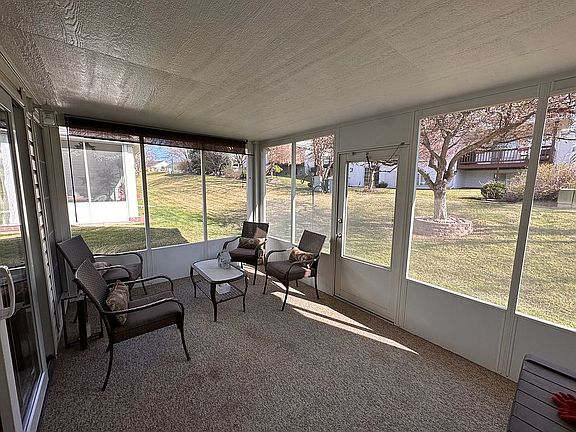 Superior location on this low maintenance, basementless townhome! Large eat-in kitchen, breakfast bar, lots of cabinets and pantry. Cathedral ceiling over comfortable living room with gas fireplace. Primary bedroom features another cathedral ceiling, walk-in closet and large 3/4 bath. Second bedroom doubles for nice office space. Laundry and full bath right off main hallway. Relaxing 15'x10' enclosed patio, lawn sprinklers, and 2 car garage. Home all electric except for the gas fireplace.