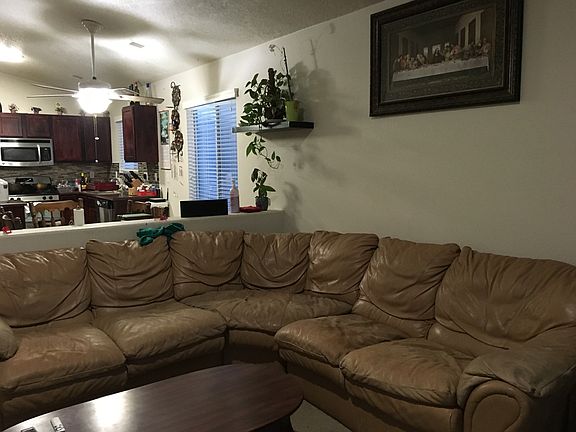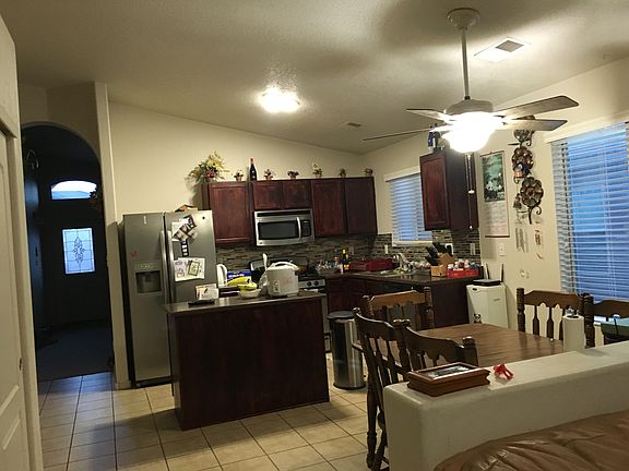 Charming, updated home in the desirable Cabezon Rio Rancho. 4 bedrooms and 2 baths with open living spaces make this floor plan ideally designed! tiles in the formal dining and all wet area. Kitchen is centered within the living spaces of the home and ties them all together! Beautiful backsplash and stainless steel appliances. Backyard offers lots of yard space and fruit trees! Recent updates include LED lights and ceiling fans in all room. Great school and amenities ! Exterior Material: Stucco Walled Backyard Appliances: Dishwasher Appliances: Refrigerator Heating: Central Forced Air Water: City Water Water: Sewer-City Flooring: Ceramic Laundry Location: Service Room Laundry Power: Electric MBR on Main: Yes Roof: Pitched Construction: Frame Flooring: Carpet Appliances: Microwave Cooling: Refrigerated Roof: Tile Appliances: Dryer Appliances: Washer Faces: South Windows: Sliding PID: Yes Stories: 1 APPLIANCES INCLUDED