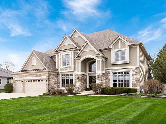 Stunning Custom Home by Patrick Custom Homes! Nestled on a professionally landscaped premium lot backing to open space, this gorgeous property offers exceptional privacy and a resort-style in-ground pool surrounded by an expansive patio-perfect for lounge chairs and entertaining. Inside, you'll find over 5,800 square feet of beautifully finished living space showcasing meticulous craftsmanship, rich custom millwork including wainscoting, and elegant design throughout. Thoughtfully designed custom archways create seamless transitions between rooms, enhancing the home's open feel. The gourmet kitchen is a showstopper, featuring custom white cabinetry, quartz countertops, a massive granite island with breakfast bar seating, stainless steel appliances, a custom range hood, and a combination of recessed and pendant lighting. The spacious family room is warm and inviting with a custom gas fireplace and an abundance of natural light. A main floor office with French doors offers serene views of the lush backyard through its oversized window. Upstairs, the luxurious primary suite includes a tray ceiling, two large walk-in closets, and a spa-like bath with a huge custom walk-in shower and double vanities. Bedroom 2 is a private en-suite with its own bath and walk-in closet, while Bedrooms 3 and 4 are generously sized and share a beautifully updated hall bath. A fifth bedroom offers flexible space perfect for a guest room, home office, or bonus room. The fully finished basement is an entertainer's dream, featuring a media room, bar, craft room/home office, and a large workroom. Two electrical heating units ensure year-round comfort in the lower level. Additional features include: zoned heating, irrigation system, central vacuum, Ring doorbell, new carpeting, and more. Outside, the custom-tiered landscaping, paver walkways, and fenced backyard lead to your private oasis with an in-ground pool. Located in the highly acclaimed Batavia School District, and close to shopping, dining, and parks-this is truly a one-of-a-kind opportunity. Don't miss your chance to make lasting memories in this extraordinary home!
