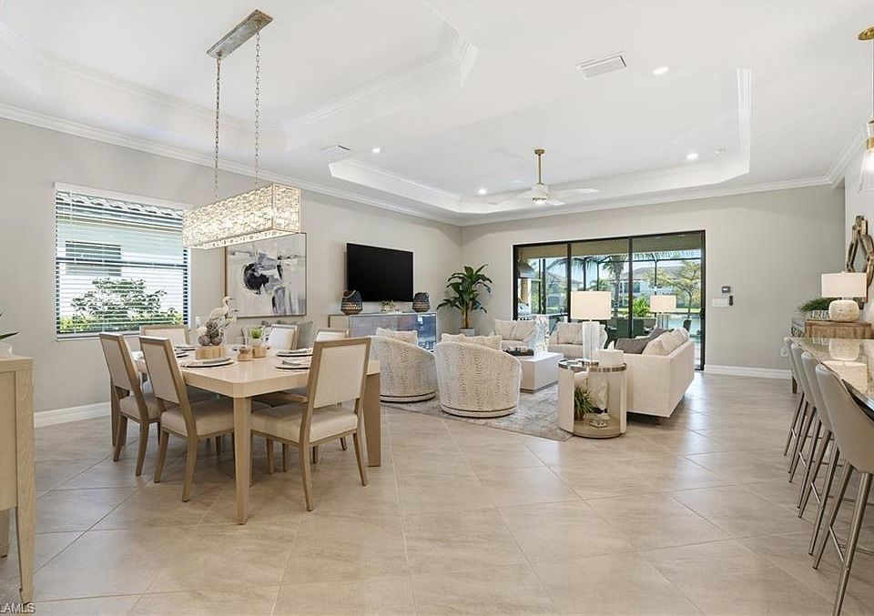 Welcome to one of the most tastefully designed and meticulously upgraded Maria Models in Bonita National—arguably one of the finest neutrally decorated homes in the entire community. Move-in ready and styled to perfection, this residence reflects true resort-style living with thoughtful enhancements throughout. A textured Therma-Tru front door with Chelsea glass brightens the foyer while setting a refined tone. Inside, the home showcases designer lighting, upgraded ceiling fans, impact windows, UV light on the HVAC system for mold protection, and blown-in attic insulation (including over the garage) for comfort and efficiency. The gourmet kitchen takes center stage with a large center island, rich cabinetry, and seamless connection to the dining and living spaces—ideal for both intimate evenings and entertaining. The main bedroom suite offers a luxurious escape with tray ceilings, a spacious walk-in closet, and a slider open to serene pool views. Each of the home’s three bedrooms includes its own private en-suite bathroom, giving family and guests ultimate comfort and privacy. A standout feature is the custom-designed den/office, perfect for the modern work-from-home lifestyle. This flexible room can be effortlessly converted into a 4th bedroom or furnished with dual beds for additional guest accommodations. Step outside to enjoy the beautiful pool and lanai area—your personal oasis for relaxation and year-round sunshine. Located in the sought-after Bonita National Golf & Country Club, residents enjoy unmatched resort-style amenities, including: • A spectacular resort-style pool with waterfall features • Lap pool for fitness swimmers • Full-service spa • State-of-the-art fitness center with studio classes • 8 lighted Har-Tru tennis courts • Brand-new pickleball and bocce courts opening soon • Dining, social events, and the full luxury country club experience All of this is just minutes from pristine Gulf beaches, world-class dining, and the convenience of RSW Airport.