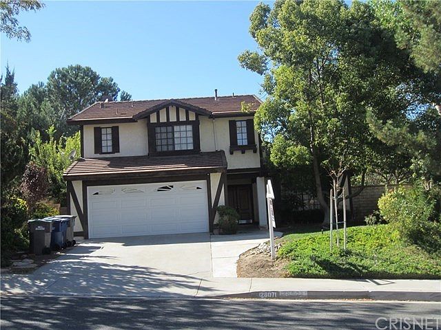 Tudor style home nestled in the Hills of Saugus. This lovely home offers a spacious interior with 4 bedrooms 3 baths in 2005 square feet. Double entry doors, large bay window in the living room. House formal dining room, living room and large family room with fireplace. Large kitchen with additional eating /dining area facing the large back yard. Interior laundry room between family room and garage. The kitchen is sunny with plentiful cabinets and pantry. All 4 bedrooms are located upstairs. The master suite in this home has his and her closets, own on suite bathroom with vanity, and additional closet. This is a unique rental located on a cul de sac in a tranquil tucked quiet residential neighborhood. Only single family residences in this tract. T Large private backyard with fire pit, and mature landscaping. Attached two car garage, and plenty of street parking in this low density neighborhood. The home is located to 3 excellent award winning schools. Close to major transportation, shopping, trader joes, Starbucks, Best Buy, dining, library, central park, public transportation, and hospitals. Location, location, location. Rare to find a rental in this tractt