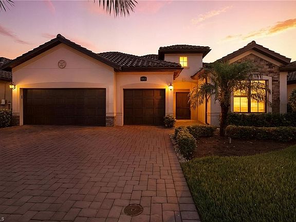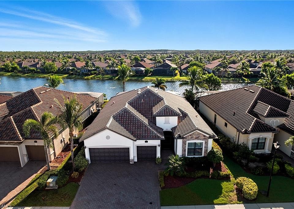 Step into this impeccably maintained, elegantly appointed estate home, where every detail has been thoughtfully designed for comfort and sophistication. Featuring 3 spacious bedrooms plus a versatile den, a split-floor plan for privacy, and 3 full bathrooms, this residence perfectly balances elegance and functionality. The 3-car garage offers ample space for your vehicles and storage needs. The gourmet kitchen boasts a massive island and flows seamlessly into the open great room, where walls of glass frame sweeping views of the sparkling pool, spa, and tranquil lake. With 10’ ceilings, tray accents, impact windows and doors, plantation shutters throughout, and remote-controlled upgrades (including a lanai hurricane panel and retractable shade), this home exudes both luxury and peace of mind. Outdoor living is just as extraordinary. Entertain effortlessly with a custom outdoor kitchen featuring a propane gas grill, beverage refrigerator, and professional hood venting—all overlooking your private pool retreat. Beyond your doorstep lies a community designed for an unparalleled resort lifestyle. Your HOA includes exclusive access to world-class amenities: • Elegant dining experiences at the Clubhouse’s formal dining room • Casual bites and cocktails at the Poolside Cabana Bar & Restaurant • A resort-style pool recognized as one of the most spectacular in all of Southwest Florida • Endless activities, from fitness and social clubs to sports and live events • Golf privileges with scheduled tee times This is more than a home—it’s the Florida luxury lifestyle you’ve been dreaming of, with everything you could desire at your fingertips. Opportunities like this are rare—claim it before it’s gone.