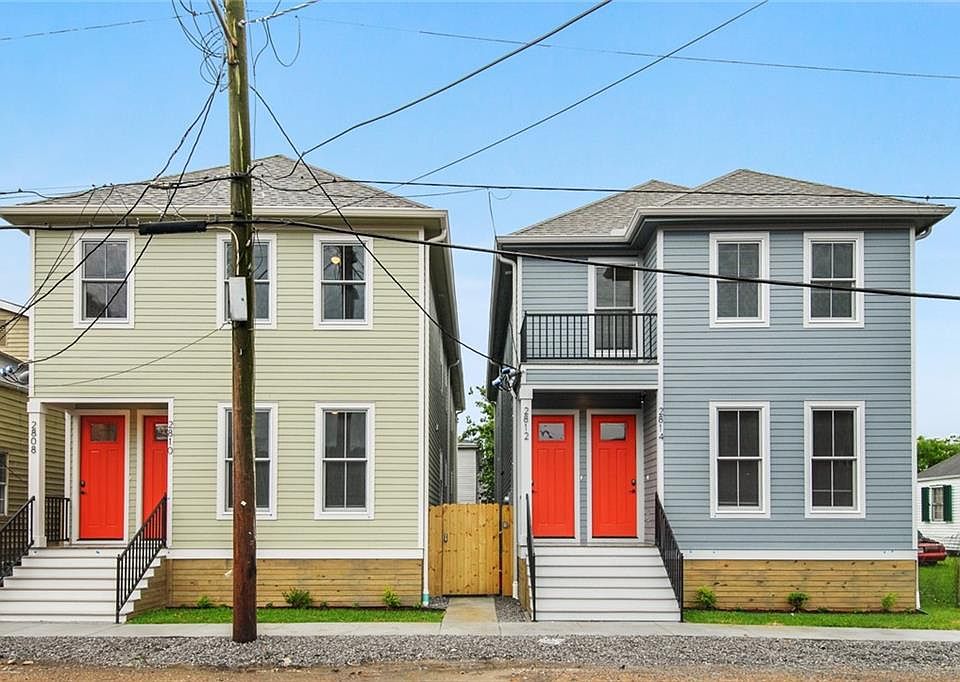 2808 – 2814 Philip Street in New Orleans includes two adjacent newly constructed residential buildings. The buildings encompass approximately 6,052 sf and are set up for shared housing/co-living. The property contains 18 bedroom-style units, eight units contain en-suite baths and ten units have shared baths (12 total baths). The property is divided into four flats – there are four kitchens and living areas shared by residents.
