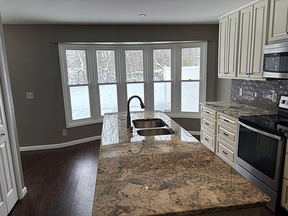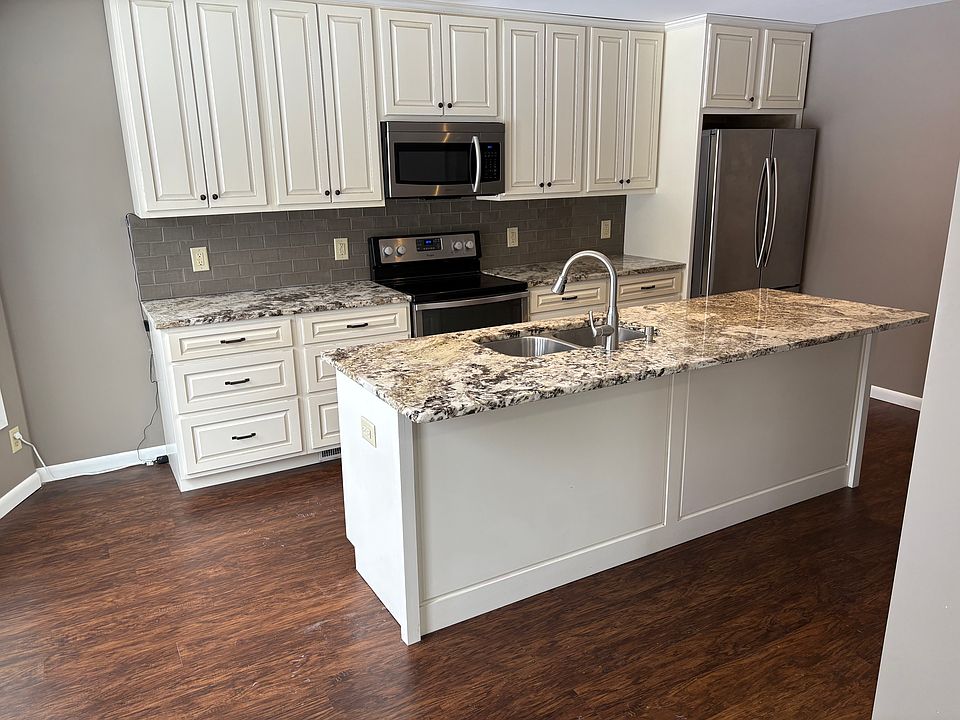 For rent we have a large 1600 square foot split level 2 bed 2 bathroom apartment with a beautiful kitchen main floor laundry hook ups 1 car attached garage and a 1 car detached garage a fantastic wooded view and a cozy den in the basement. conveniently located in Rock Island IL