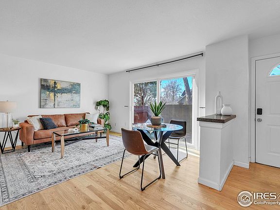 Move in ready two story 3 BR 2BTH west facing light filled townhome. The main level has an open floor plan with a seamless walk out to the patio from the living room. Enjoy the sunset and views of the mountains from the patio and upstairs bedroom windows. Kitchen has nice finishes and both bathrooms have been updated. There are hardwood floors throughout the main floor. Efficient separation of space with 2 bedrooms and a full bathroom upstairs and a finished basement with an updated 3/4 bathroom that makes for a spacious private primary suite or area can be used as a flex space.There are 2 assigned parking spaces along with street parking. Great location just off West 29th. Walk to the Richard Hart Estate park. Walk or bike to Sloans Lake, Edgewater marketplace and to nearby restaurants and shops. Easy access to I70. See note in Additional Documents from sellers about what they enjoyed about living there.