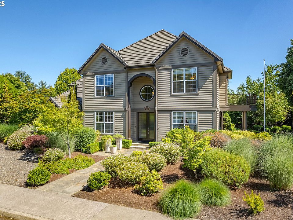 Discover your dream home in the prestigious Edgewater community! Just steps away from miles of river walking trails. This beautifully designed residence sits on a desirable corner lot, offering enhanced privacy and curb appeal. The luxurious primary suite is a true retreat, featuring a private balcony where you can relax to the soothing sounds of the neighborhood waterfall. The elegant formal dining area seamlessly opens to the living room and private patio, creating flow for entertaining and daily living. A sophisticated office space with glass double doors provides a quiet workspace while maintaining a visual connection to the home. Don't miss the versatile bonus room, perfectly equipped with a built-in mini fridge and drawer dishwasher - ideal for entertaining guests, creating a secondary workspace, or designing your perfect hobby space. This thoughtful addition adds tremendous value and functionality. Located in Eugene's sought-after Edgewater neighborhood, you'll enjoy community amenities and easy access to restaurants and shopping. The open floor plan maximizes natural light throughout, while quality finishes create an atmosphere of comfort and elegance. Oh....did we mention the garage thats over 900 sq ft?