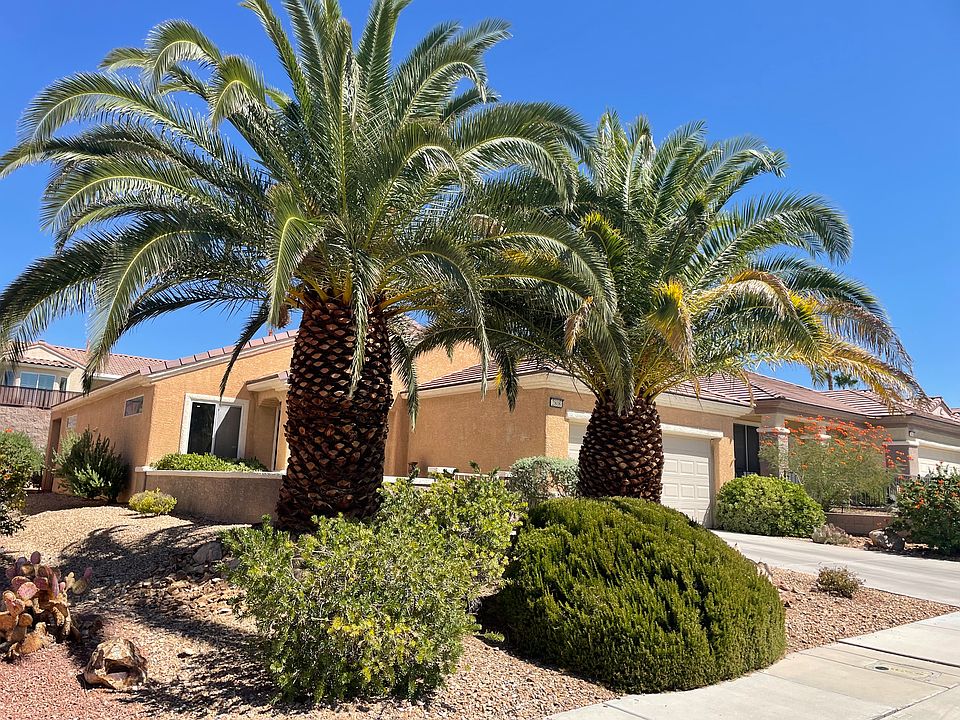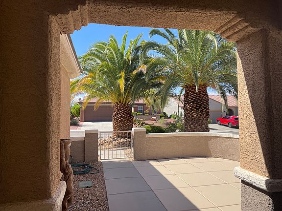 Come home to a tranquil desert retreat located in the vibrant 55+ community of Sun City Anthem. This two bedroom and two bathroom home features a front patio with a stunning view of two mature palm trees which offer both shade and privacy. The eat in kitchen boasts granite countertops, stainless steel appliances, updated cabinetry and a large pantry. The spacious living and dining rooms overlook a peaceful and fully fenced backyard . The large main bedroom is accented by a bay window and a spacious attached bath. This home provides access to a variety of upscale amenities for which Anthem is famous.