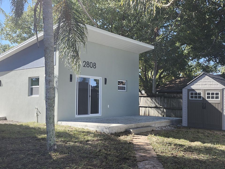 BE THE FIRST TO LIVE IN THIS BRAND NEW, unfurnished 620 sq. ft. upscale one bedroom, one bathroom, cinder block house with two large, shady, fenced yards on quiet cul-de-sac. Private 7x7 ft. storage unit. Non-smokers only. Brand new top-of-the line A/C/heater, water heater, microwave, dishwasher, fridge, washer-dryer, granite countertops, vinyl flooring, hurricane windows, designated parking for one car. Pet friendly. Walking distance to lots of shopping and dining (Publix, Walmart, Ace Hardware, short drive to Trader Joe's and Sprouts). Two patios, 8x14 ft and 10x21 ft. Near Honeymoon Island, beaches, sponge docks.