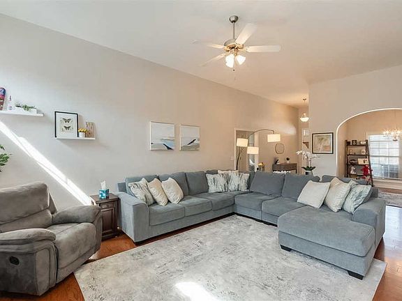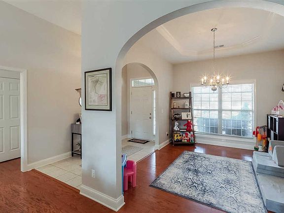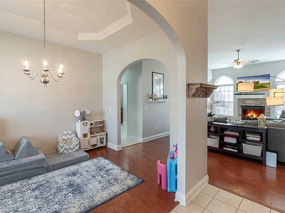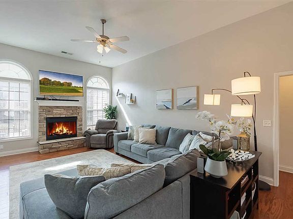 Welcome to this fantastic split floor ranch with a spacious living room and vaulted ceilings filled with natural light. Wood flooring throughout the main living areas. 3 bedrooms & 2 full baths. This home has been lovingly cared for & impeccably maintained. Open floor plan makes entertaining easy! Owners suit has separate dual sinks & vanity area as well as tray ceilings. flat back yard w/ lots of storage in the garage & laundry room; Covered front porch; Privacy fence; and, Oversized garage (462 sf). Walking distance to Sandersville Elementary. Membership to the neighborhood pool & clubhouse is option