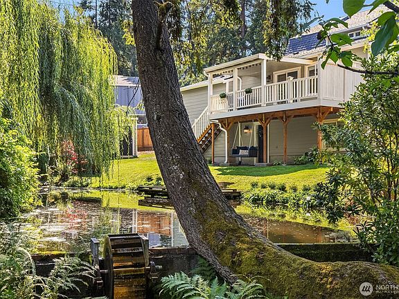 Tranquilly situated on a scenic spring fed koi pond with floating dock & waterwheel, this elegant Dutch Colonial Revival exudes old world charm embodied in a modern new luxury home! Boasting 3228sf, 4 beds & 2.5 baths on sprawling .23 acre lot in ultra convenient Kennydale. Fully updated & masterfully crafted with sophisticated designer finishes throughout ~ ebony hardwoods, crown moldings, tray ceilings, wainscoting, upscale lighting & iron rail open staircase. Stunning showcase kitchen with custom range hood & dining island. Main floor primary with lavish en suite. Wrapped in windows with abundant natural light. A year round outdoor oasis with spacious covered porches. Huge garage & ample parking. Short walk to grade school & playgrounds!