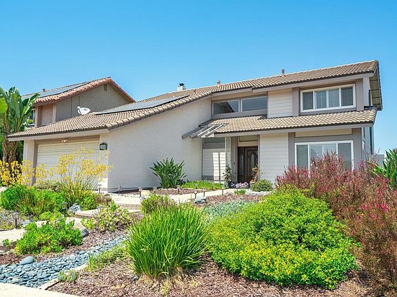 Welcome to your charming coastal retreat! Located in the serene setting of a quiet neighborhood in Rancho Ponderosa, this beautifully maintained home exudes elegance and comfort. Step inside and be greeted by spacious living areas flooded with natural light, highlighting the stunning views from every window. The open-concept kitchen, featuring granite countertops and a breakfast bar, is perfect for both casual meals and lively gatherings.This home offers four bedrooms, all conveniently situated on the second floor for added privacy and versatility. The primary suite serves as tranquil haven, complete with an en suite bathroom showcasing travertine tile, a standing shower, and dual sinks. Enjoy outdoor living at its finest with an expansive paver terrace under a charming pergola, perfect for relaxation or hosting guests while enjoying spectacular Fourth of July fireworks. The low-maintenance landscaping and a new irrigation system mean you can spend more time enjoying your space. With a newer HVAC system, whole-house fan, smart thermostat, and owned solar panels, comfort and efficiency are ensured throughout the year. The generous 8,177 sq. ft. lot offers plenty of room for entertaining and creativity. This home is ideally located just 3 miles from the beach and close to Stagecoach Park, which offers a variety of recreational activities and summer concerts at the park. The Carlsbad Forum and many grocery stores such as Sprouts, Jimbos, Target are all 5 min away, plus many restaurants/coffee shops are nearby, providing ample opportunities to explore the neighborhood. Plus, with three parks within a 5-minute walk, there is always an adventure waiting. Your dream home is ideally situated near top rated schools, scenic hiking trails with very low HOA dues of just $62/mo. Whether you are indulging in nearby dining or enjoying the outdoor amenities, this home is your perfect sanctuary in La Costa. Make it yours today and start living your dream lifestyle!