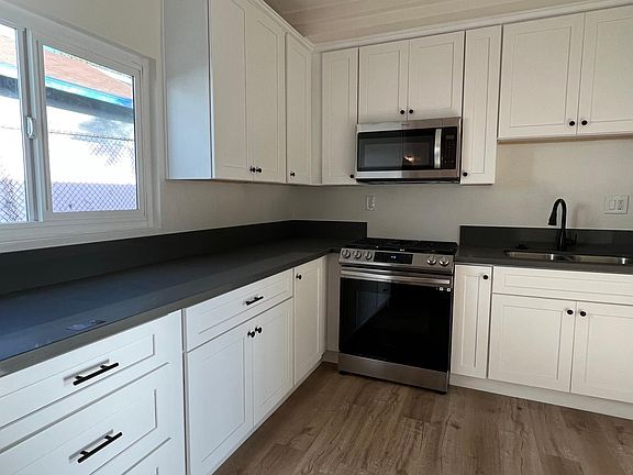 Located in an authentic Boyle Heights neighborhood with views of a distant DTLA and only 6 minutes from the Art District! Boyle Heights is an area culturally rich with incredibly talented artists, musicians, and home to the famous Mariachi Plaza at the LA Metro line station. This is a RARE opportunity to live in a turn-key house with new appliances which include a refrigerator, gas stove, microwave, and washer & gas dryer! The front unit house is fully gated with 2 bedrooms, 1 bath, and two parking spaces. Fresh interior and exterior paint, plank flooring throughout, updated baseboards, door hardware, updated white shaker cabinets with quartz counter tops, updated baths, indoor laundry rooms, and separate gas, and electric meter. The unit has a new HVAC unit and NEST thermostat! Proximity to LAC/USC Medical Center, schools, new restaurants, and freeway access. Front unit only and one shared wall kitchen and laundry room. *We will be conducting tours this week Monday- Friday after 4pm by appointment only. * Shutters will be installed this Tuesday. One year lease Tenant responsible for gas and electrical (separate meters).