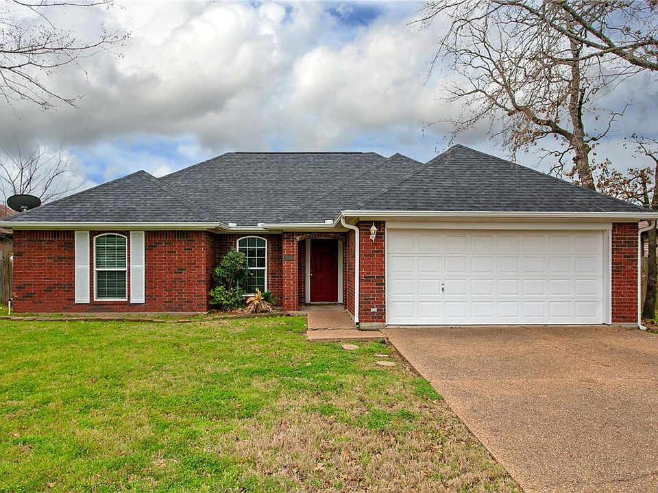 This charming traditional 3 bed/ 2 bath home is nestled in the heart of College Station with easy access to nearby schools, dining, and shopping. With an open plan you can entertain friends or connect with family from the kitchen and dining areas that overlook the spacious living room. The wood fireplace and tall ceilings make this living room feel extra welcoming and it has beautiful french doors leading to the backyard. You will be delighted with a wooden deck and large space perfect for outdoor living. The primary bedroom is tucked away by itself and features a spacious room with a cozy fireplace and a nice en-suite with double vanities, a walk in shower and separate tub, as well as a walk in closet. The secondary bedrooms are comfortable with nice closet space.