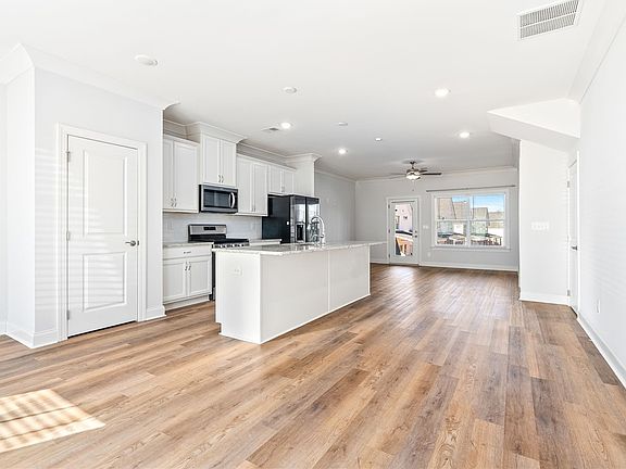 This like new interior townhome features 2 bedrooms and 2.5 bathrooms. The front door opens into a large dining area that overlooks a beautiful kitchen with a gas range and massive island with ample room for a breakfast table. The living room is full of light and leads to a covered back porch. There are also 2 storage closets and a half bath on the main level. Head up the wood stairs to a landing area with a closet, nook, and laundry. The Master Bedroom is spacious featuring a tray ceiling and opens up to the Master Bathroom with a private water closet and a super shower with bench. The Second Bedroom is also spacious with it's own private bathroom that is full of natural light. The refrigerator and washer/dryer will stay with the home!