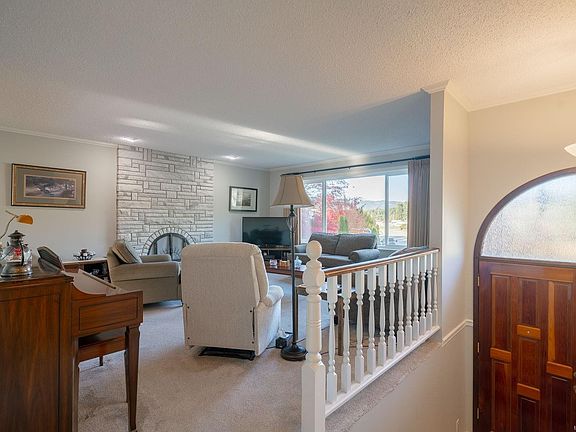 Immaculate and lovingly maintained, this 4-bedroom, 2-bathroom family home is nestled in a quiet, sought-after neighborhood backing onto peaceful greenspace. The bright and welcoming living room features a cozy fireplace, while the eat-in kitchen offers plenty of storage and easy access to a private patio overlooking a beautiful, treed backdrop—perfect for enjoying the vibrant fall colors. Three spacious bedrooms and a 4-piece bath complete the main level. Downstairs, you’ll find a generous rec room with a charming gas fireplace and brick surround, a fourth bedroom, laundry area, and a 3-piece bath. The yard is beautifully landscaped with lush gardens, mature shrubs, and trees, offering both beauty and a relaxing retreat. A detached, wired shop/garage provides ample space for hobbies or storage. Built with 2x6 walls for added efficiency and comfort, this home is just steps from the Log Train Trail, local recreation, and schools—a perfect blend of nature, convenience, and family living.