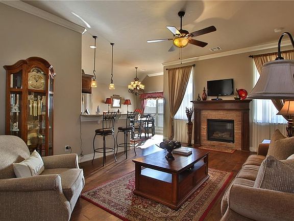 Back on the market! Stunning...Immaculate home in Rock Creek. Move-in ready! This gorgeous home is nestled on a corner lot and has what your buyers are looking for. Appears brand new! Master bedroom has trey ceilings, ceiling fans and lighting. Master (5) bath has jetted tub, double sinks, walk-in shower and granite counter tops. This home is fitted with top of the line upgrades, including engineered hard wood floors in the living room, granite throughout, crown molding, ceiling fans in all bedrooms and in media/bonus room, sprinkler system front and back. Tankless water heater and yes this Moore beauty does have and in ground storm shelter. Community pool and close to parks, walking trails and shopping. PRICE IMPROVEMENT!