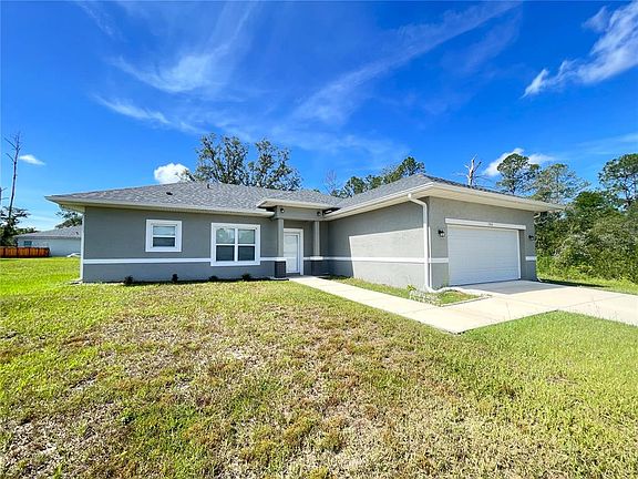 Welcome to your fresh start in Ocala! This isn’t just a house—it’s a brand-new chapter waiting for you. Everything here feels clean, bright, and ready for your life to unfold. Built with care and designed for comfort, this 4-bedroom, 2-bath (built in 2023) beauty has all the space you need to grow, laugh, and make memories. Walk in and you’ll feel the openness. Vaulted ceilings make the living area light and airy, while luxury vinyl floors mean no stressing about messes. The kitchen is a dream with it's center piece, a big island for entertaining, shiny granite countertops, stainless steel appliances, and a pantry that can actually fit all the snacks. The primary suite is your own peaceful getaway with a big walk-in closet and a bathroom built for two (yes, double sinks!). The other bedrooms are perfect for guests, or even a home office. Step outside and you’ve got a covered patio for BBQ nights, a yard ready for activities, and new LeafFilter gutters that keep things low-maintenance. Best of all, this home is in one of the top school districts in Marion County, with schools like Marion Oaks Elementary and Sunrise Elementary nearby. Ocala is growing fast! That means your new home isn’t just a great place to live—it’s a smart investment for your future. Fresh and full of opportunity. This one’s ready for you. Don’t wait—schedule your showing today!