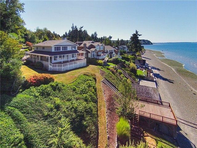 One of a kind 1925 original build Craftsman,complete w/wraparound open air porch to astound w/western facing waterfront. Sweeping sound views. Descend this mid bank property to the private stairs of a sanctuary complete w/bulkhead~sun deck~beach~tide rights. Professionally landscaped terraces w/fruit trees. Meander along the private drive to your front door. Updated from it's original build.Amazing open floor plan captures unobstructed views from nearly each room.A true show stopper/jaw dropper!