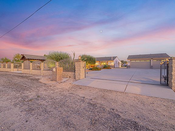 Amazing Westside Compound on 2.62 Acres in White Fence Farms! Zoned A2 for Horses/Kennels! Fully Fenced and Cross-Fenced. Front Block Wall with Wrought Iron - Pilaters with Lights. RV Access. Main Front Gate Leads to Large Cover with Sitting Area. Mature Xeriscaping. Flowers - Cacti - Huge Boulders! Covered Front Swing. Rock Fountain. Exterior Lighting. Curved Sidewalks Lead to Totally Updated and Upgraded Single Story! 2-Tone Stucco Exterior. Wood Trim Rock Accents. Estate Lights. Rain Gutters. Covered Front Porch with Recessed Lighting. Heavy Arched Knotty Alderwood Entry Door! Dual-Paned Windows. Solar Tubes. Omni-Coat Drywall with Limestone Finish! Base and Crown Moulding. Travertine Tile Floors! Formal DR with Built-in Sideboard. Awesome Kitchen is a Work of Art! Knotty Alderwood Cabinets! Custom Colored Concrete Counters with Thick-Rough Edges! Travertine Backsplash! Viking 6-Burner Range-Stove with Large Stainless Hood! Frig Stays. Walk-in Pantry. Spacious Family Room with Custom Floor-to-Ceiling Fireplace with Raised Hearth! Decora Paddles. Central Air-Heat. Ceiling Fans. Huge indoor Laundry Room. Washer-Dryer Stay. Features Include Sliding Barn Doors, plus More Travertine and Alderwood! Primary Bath has Tile Floor, Double Vessel Sinks, Custom Tile Counters and Big Shower with Double Rain Shower Heads! Separate Oversized Oval Tub. Vanity. Ample Walk-in Closet with Center Island, and Recessed Lights, Built-ins plus Full-Length Mirror! Primary Bedroom has Open Beam Ceiling, Large Ceiling Fan, TV/Brackets Included, Plus 2-Inch Blinds/Verticals. Detached 3-Car Garage with Roll-up Doors/Windows. House and Garage have Attic Fans. Sliders Lead to Stuccoed-in Wrap-Around Covered Patio! Fully Fenced Solar-Heated IGG Pool and Raised IGG Spa! Bullnose Brick Coping! Tile and Boulder Accents! Slide. Huge Free-Standing Cover with Fire Pit/Ring. Exterior Lamps. Extra Amenities Include a Deluxe Office and Studio Apartment with a Shared Bath, Central Air-Heat, and Covered Front Patio! Giant Double-Door Workshop with Full Bath, Swamp Cooler, and 3 Keyed Rooms. Picnic Area. Play Set for Kids. Horseshoe Pit. Cornhole Area. Peach Trees. Large Tractor Barn with Roll-up Door and Wood-Working Shop! 20 Dog Kennels and 2 Large Animal Pens. Block Wall (East) and Chain Link Fence (South and West). Show and Sell this One-of-a-Kind Masterpiece!!