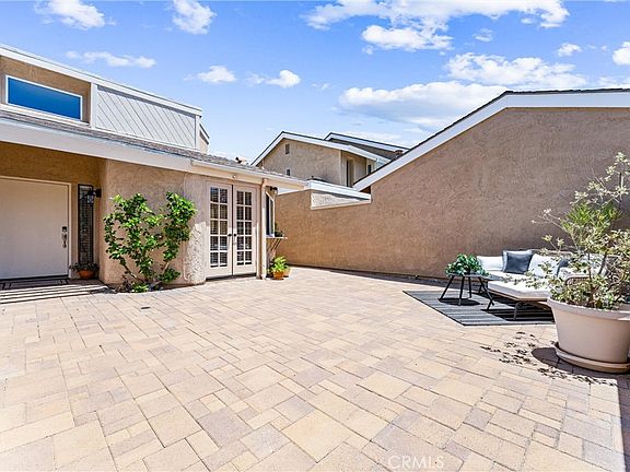 Discover highly desirable single-level living in this remodeled 2-bedroom plus den, 2-bath home nestled on a cul-de-sac in Laguna Niguel. Spanning 1,574 square feet, this bright, open-concept residence has been updated throughout. As you arrive, private front and rear patios with low maintenance, interlocking pavers welcome you into the foyer entry with a side-panel window for extra light. Vaulted ceilings soar over the living and dining areas, anchored by a dual-sided gas fireplace finished in contemporary porcelain tile. Adjacent, a designated dining area with chandelier lighting and sliding doors creates an effortless indoor-outdoor flow to the rear patio—ideal for al fresco entertaining. The heart of the home, the kitchen, boasts classic laminate wood cabinetry topped with durable granite counters, spacious pantry cabinets, and a breakfast/workstation nook under a tray ceiling with recessed lighting. Stainless steel appliances (including a brand-new dishwasher), reverse-osmosis filtration, and brushed-nickel fixtures elevate both form and function. French doors open from the kitchen to the front courtyard, bathing the space in natural light. A versatile bonus room, den or home office lies just off the main living area, or you have the option to convert into a third bedroom. The inside laundry room is equipped with abundant cabinet storage and a whole-house water softener for added convenience. Retreat to the serene master suite, where dual granite-topped vanities, updated sinks and lighting, and a fully remodeled walk-in shower await. Triple mirrored closet doors and a dedicated walk-in closet ensure ample storage, while sliding doors open to the front courtyard. The second bedroom features sliding mirrored closets and direct patio access, complementing the guest bath’s dual granite vanities and updated finishes. Additional highlights include porcelain flooring in the kitchen and baths, 5? baseboards, new interior paint, Milgard vinyl windows and sliding doors, and a detached two-car garage with built-in storage cabinets. All kitchen appliances are included. Experience the best of Laguna Niguel living at 28082 Palmetto Court—where thoughtful upgrades, indoor-outdoor harmony, and effortless style come together in one exceptional home.