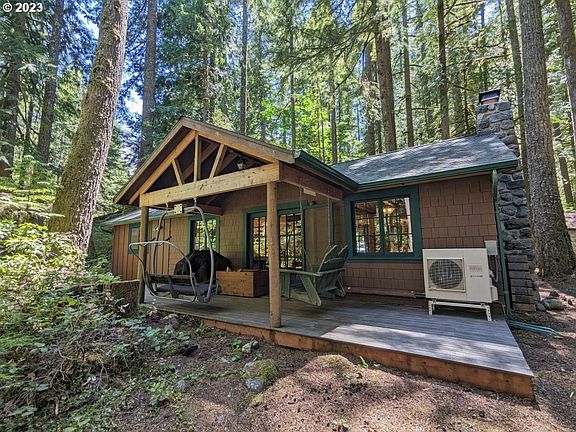 Riverfront living in the heart of the Mt. Hood National Forest! This Rhododendron location offers a charming Zig Zag Riverfront cabin with an opportunity to enjoy nature while owning a cozy retreat. Situated on leased land, this cabin has delightful features that make it a perfect second home escape.Boasting approximately 900 square feet of well-designed living space, this cabin offers one bedroom plus bonus mini loft with multiple beds over the living room. The historic cabin was built in 1936 but has modern upgrades. Step inside and enjoy the full furnished cabin that's turn key and ready for occupancy. I love the stone fireplace with original intricate tile inlays.An addition introduced a fully equipped kitchen, bathroom, and utility area complete with washer and dryer. The open floor plan connects the kitchen, dining area and living room, highlighted by vaulted ceilings, pine walls, wood beams, and original paned windows that flood the space with natural light. Vinyl floors in the kitchen and bath complement the carpeting throughout. French doors open onto the riverside covered deck with swings. It's the perfect spot to unwind with the sounds of the Zig Zag River. This cabin comes with a bonus carport and storage/tool shed area, providing space for your outdoor toys or firewood.For modern needs, internet access is available at the cabin, allowing you to stay connected while enjoying your mountain getaway. Turn on your mini split heating from home through the internet and have your cabin warmed up cozy for your Friday evening arrival for the weekend!Outdoor enthusiasts will love this location with the cabin's close proximity to skiing, snowboarding, hiking in the Mt. Hood National Forest, and mountain biking on the many local trails. The slopes are just a short 20-minute drive away, making this an ideal location for winter sports and shorter drives to the slopes.Please note this property is not permitted for full-time residency or nightly rentals.