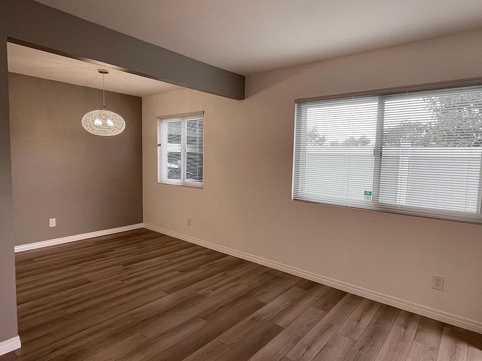This property is freshly painted with brand new laminate flooring's. It has one garage space and one carport space. The entire condo was completely renovated recently. Also has its own gated patio. The front door features a metal security door that can be locked to allow airflow into the front living room. Unit has central heat and air along with its own refrigerator, stove/oven, and microwave. Up stairs, you have two bedrooms and one hall bathroom. The updated hall bathroom has a tub/shower combination with a vanity. Just outside the unit there are washer and dryers on site. The garage is located underneath the unit and features a locking room for storage, as well as a built-in storage area inside the garage as well. The garage is shared with the neighbor. There is an additional assigned carport spot located under the front patio. Trash and water are included with the rent. The community has a pool, basketball court, and play area. Washers and dryers are community and located inside each building. This is a non-smoking unit. There are no pets allowed in the unit or on the property. Water is included in the property. tenant pays for gas, electric, Internet, and cable. Tenant may not do any painting or repairs on their own. If any painting or repairs need to be done they must notify the landlord. Landlord with do a maintenance check every six months on the unit included in the rent. Items on the checklist will be the toilet, tub sink, garbage, disposal, air conditioning, bathroom vent/fan.