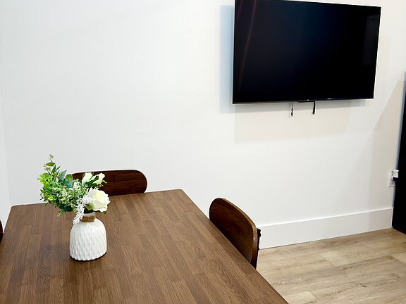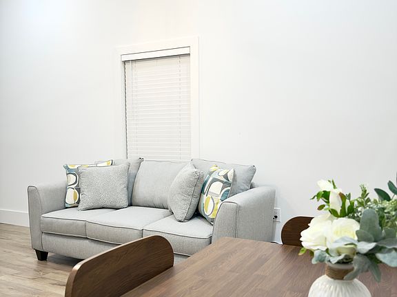 Fully renovated and furnished residence located in a quiet residential area. The property features high ceilings, a spacious living and dining area, Smart TV, and high-speed WiFi. The kitchen is fully equipped with a refrigerator, stove, microwave, coffee maker, toaster, and cooking utensils.