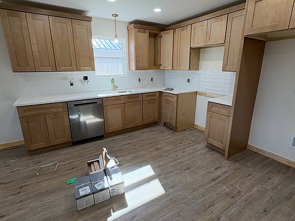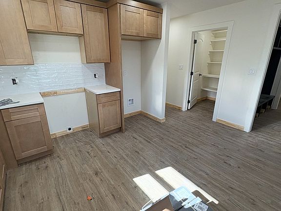 Welcome home to this stunning newly built residence, where clean modern style meets everyday comfort. Step inside to an open, light-filled layout highlighted by a vaulted ceiling in the living room, sleek vinyl flooring throughout, and gold finishes. The kitchen boasts white oak shaker style cabinetry, stainless appliances, and a large walk-in pantry—perfect for storing all your essentials. A convenient mud room with built-in bench sits just off the 2-car garage, creating an ideal drop zone for busy days. Extend your living outdoors with a privacy-fenced backyard with sod. With its modern finishes, functional layout, and brand-new build quality, you won't want to miss this opportunity! Estimated to be completed by the end of December.