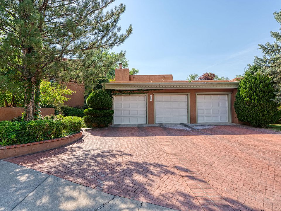 This is a Very rare oppurtunity to own a stunning home in the Rio Grande Compound! Backing up to the Bosque and Rio Grande River, this gorgeous home offers a newly renovated master bathroom, new flooring throughout, 3 fireplaces, and a huge 3 car garage! Conveniently located in the heart of the north valley just minutes to I-40 for easy freeway access. The home is steps away from the Bosque where one can enjoy hiking and biking trails. Live among the cottonwoods in this gorgeous gated north valley neighborhood!