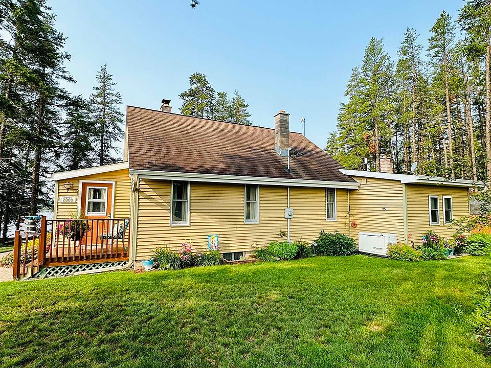 Gorgeous, serene setting on the Dead River Basin. Beautiful well-kept home sitting on over an acre with 206' of sandy beach water frontage. The deck and breezeway are perfect for keeping sand out of you main living areas. Main floor features spacious living room, eat-in kitchen, family room, two nice sized bedrooms and a full bathroom. Upstairs you'll find a great sitting area on the stairs landing, another great sized bedroom and a half bath. Not only do you get to wake up every morning to seeing the sunrise for your bed, but you'll enjoy the views from so many of the rooms. Whether having coffee, watching sunrises or sunsets, visiting, playing games or just enjoying the peace and quiet the deck is sure to be one of the favorite places to be. Outside the home you can see how much care has been to put into the home with the beautiful gardens, nice deck, paver blocks leading to the home and an oversized garage and shed perfect for storing your toys for all the different seasons. Cool nights you have a nice sauna between the home and the beach. How about that wonderful sand beach? Slightly over 200' of sand beach leads to so many hours and so many fond memories made on the Dead River Basin. You'll love four seasons living with so many things to do: fishing, swimming, boating, kayaking, hunting, four wheeling, wildlife watching (moose, swans, eagles, cranes, and deer), snowmobiling or ice fishing. Don't miss this chance to own your piece of heaven on this all sports lake with views that never get old!