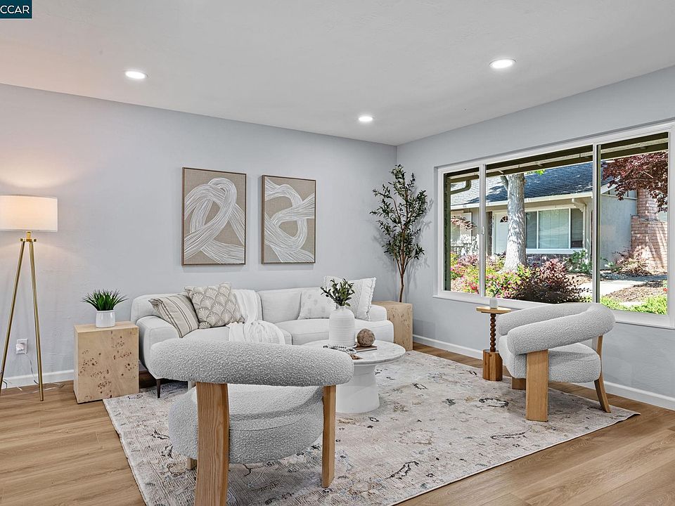 Stylish updates and modern comfort come together in this move-in ready 3-bedroom, 1.5-bath townhome, nestled in one of San Ramon's most desirable neighborhoods. Filled with natural light, the open-concept layout has been thoughtfully redesigned from top to bottom. The main level features a bright living room, dining area, updated kitchen, laundry, and a refreshed half bath. Upstairs, you’ll find a tastefully remodeled full bathroom and three spacious bedrooms for flexible, versatile living. Bask in the sun on your private patio. Plus, 1-car detached garage with extra off-street parking. Recent upgrades include contemporary luxury vinyl plank flooring, recessed lighting, designer finishes, and a beautifully remodeled kitchen with quartz countertops and stainless steel appliances. All major systems have been replaced, including the water heater, furnace, and central AC. Located in the sought-after Twin Creeks West community, residents enjoy access to greenbelts, trails, parks, and a community pool. Just minutes to the prestigious Twin Creeks Elementary and neighborhood shopping, dining, and commuter routes, this home blends comfort, convenience, and location in one turnkey package.