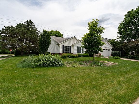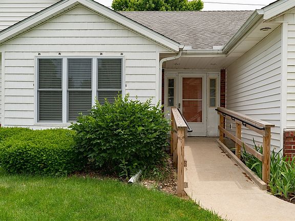 Desirable east side location in Eagle Ridge. This large 1 story has 2 bedrooms and sits on a corner lot with a private lush back yard. Cement wheelchair ramp in front with a covered entry. Front living room could be home office or guest or 3rd bedroom, master bedroom is large, with handicap accessible shower. Oversized great room 22x20 w/hardwood floor, vaulted ceiling, great kitchen, dinette by door to deck. Basement wired for 220 applications. Priced well for the area...