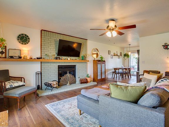 What a beauty of a home in Country Club North! Located on a quiet street the location couldn't be better. The owners have done some very nice updates recently to include exterior and interior paint, flooring, baseboards, outlets and light switches, almost all the light fixtures have been replaced and the hot water tank is less than 2 years old! The entry is spacious and on your right is the laundry room that leads to the garage. The living room has a contemporary feel with the new extended fireplace mantle and comforting sage green paint on the fireplace. The kitchen and dining are open to the living room and the kitchen has lots of cabinets for storage. The sliding door glass door in the dining room leads to the nice sized covered patio and the backyard with privacy fence and storage building. There are 2 secondary bedrooms and a guest bath with a lengthy vanity, tile tub/shower combo and lots of natural light coming from a skylight. The primary bedroom is unusually large for this area. It has plenty of room for a king sized bed plus other furniture and 2 closets. The adjoining bathroom has extra storage space, a shower and lots of light from a skylight. Call to see today before it's gone!