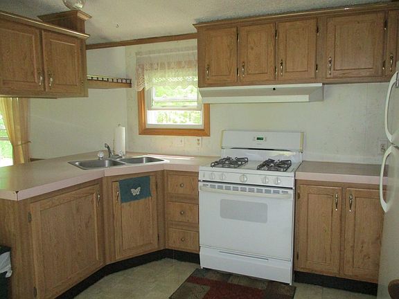 Very private country setting Well kept 1994 Skyline, nestled in the woods. This is a beautiful piece of property, plenty of wildlife and morels Home features 3 bedrooms and 2 full baths, open concept kitchen and living room. All appliances will stay with the home. Home has been well maintined with new windows and gutter in 2015, roof in 2016. 2 outbuildings, a 2 car garage and a 24 x 36 pole barn. Both buildings have electric and concrete floors. The yard has many flowering trees, and beautiful perrenial flower beds. All of this on approximately 9 acres complete with a creek