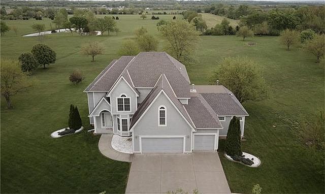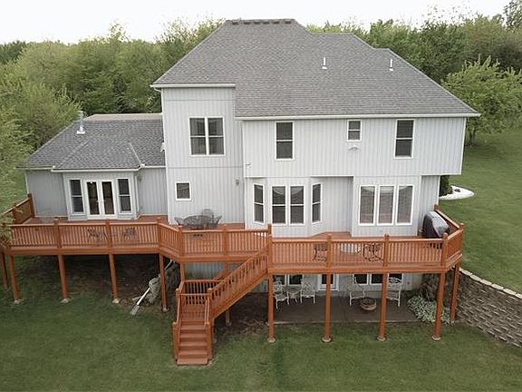 PRIVATE PARADISE ON THIS BEAUTIFUL CUSTOM BUILT ESTATE ON BLACKTOP CUL-DE-SAC. All the BELLS and WHISTLES here...Fantastic view from the Bedroom and Kitchen Deck, 5 ACRES, Sprinkler System . 5 bedroom/4.5 bath, W/O basement, 2 MASTER SUITES, HEATED TILED FLOORS, 3 FIREPLACES. GRANITE Counters, Stainless Appliances, walk-in pantry, Wonderful hardwood and tile floors. Exquisite views from the large deck. 3 Car Garage + 883 sq. ft outbuilding. 40x60 post frame metal outbuilding with 3in cement floors, 14x16 and 10x14 overhead doors and covered patio.