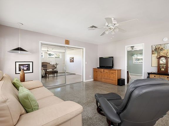 Lowest Priced single family waterfront home in Vero Beach with intracoastal access! Convenient location just outside the City limits. Minutes from beaches, shopping and schools. 3-bedroom, 2-bath home with volume ceilings. Features include: classic terrazzo floors, kitchen with island, dining room, living and family rooms. River access, spacious corner canal front lot. Large circular driveway and double carport plus oversized one car garage. Room sizes approx