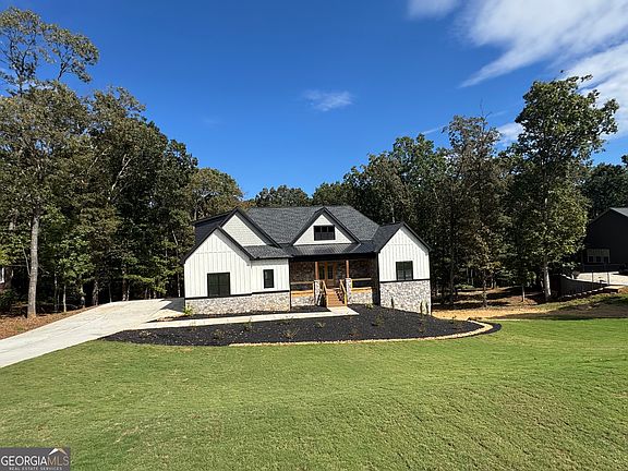 Spacious 4 bedroom, 3.5 bath home with over 2,750 sq. ft. on 1.39 acres in a desirable Clarkesville subdivision. The home features stone and board & batten exterior with a stunning landscape package. Inside, the foyer leads to an open floor plan with red oak hardwood floors, coffered ceiling, custom lighting, electric fireplace, a chef's kitchen with Z-Line SS appliances, a large quartz island, and ample workspace. The main level includes a mudroom, laundry room, and living room with french doors opening to a covered deck. The owner's suite offers a spacious bath with a double vanity, soaking tub, large walk-in shower, and an oversized walk-in closet. A screened porch is located directly off the suite for added relaxation. Additional highlights include a full basement for storage or expansion and an upstairs bonus room with climate control, offering flexible use. Close to Hwy 365, close to Lake Burton, an hour northeast of ATL. Taxes are based off unimproved land. The listing agent does not guarantee accuracy of information and shall be held harmless in the event of discrepancies.