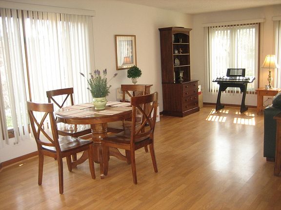 Stevenson High School Spacious end-unit town home in Park East community located at the end of a cul-de-sac! Beautiful open floor plan on the main level, combined living and dining room boast wood laminate flooring and sliding door access to the patio. Cozy kitchen graced with abundant cabinet space, breakfast nook, and newer refrigerator! Recent remodeled powder room. Master suite boasts two closets and private ensuite with shower and tub. Two additional bedrooms and a shared bath complete the second floor. Newly finished basement is open and spacious with Laundry room. Entire house freshly painted, refinished cabinetry, new light fixture through out the house, 2019 garage door and door bell. Retreat away in the open and spacious backyard with patio.