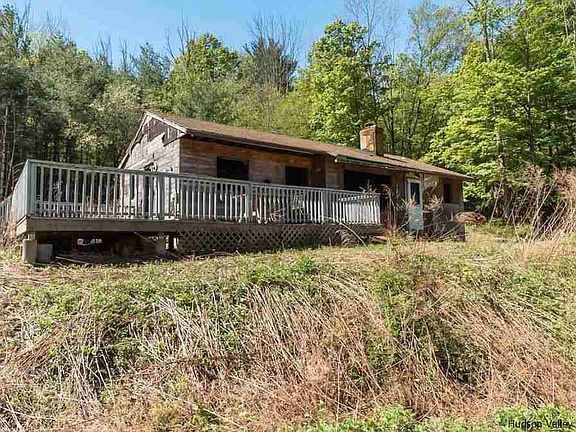 Super private acre perched up on a hill with beautiful mountain views in desirable Bearsville! Minutes to Center of Woodstock and Phoenicia Village. Wilson State Park is directly across the street....which means that no one will ever obstruct your views! Seller has stripped the house down to the studs in what is now just a shell awaiting its new owner's vision. This efficient layout is listed in county records as 635sf (but measures approx 900sf) and was designed as 2 bedrooms and 1 bath, but could be changed with an architects help or added onto for expansion. Electric is on site, well is in place and a new septic system can be paid for by DEP's watershed program (not sure of septic status) Low taxes. *Seller is including a refurbished Viking refrigerator and Viking electric stove. Seller is also including New Anderson windows with the sale (will require some reframing prior to install).* This property is being sold "As Is". Tens of thousands were spent on demolition and garbage removal and about the same was spent on clearing trees for the view. One of the only parcels on Cold Brook Rd with a view.