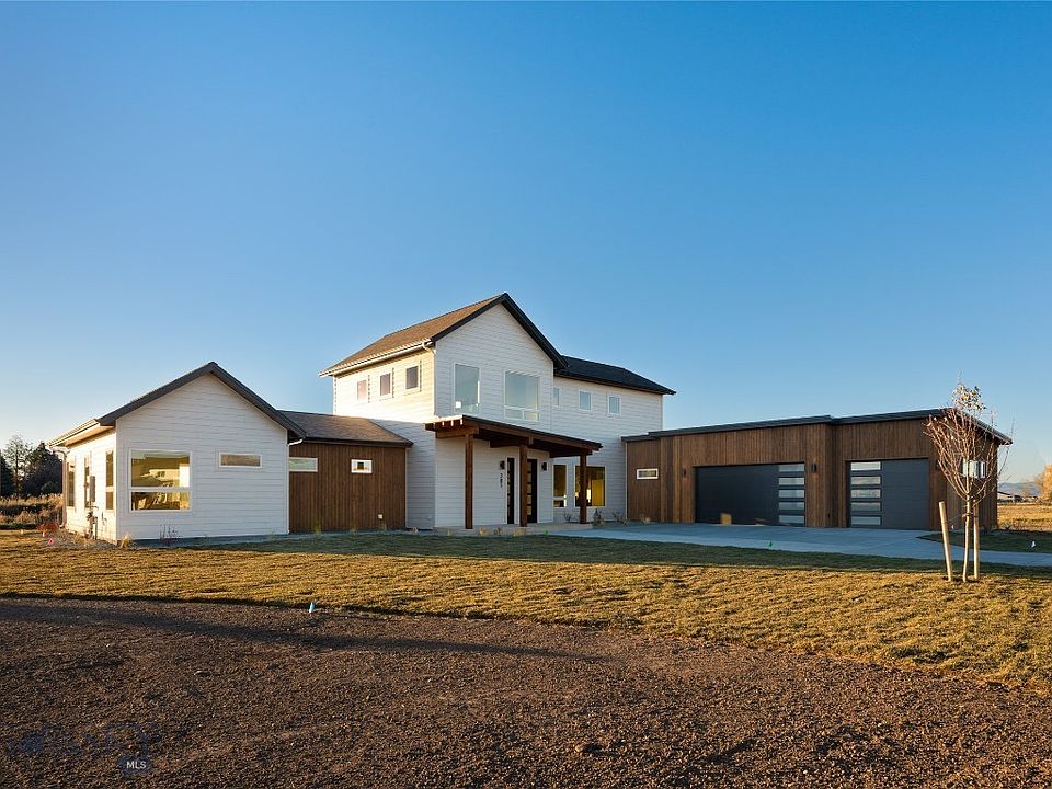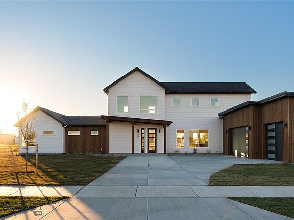Modern design meets Montana living in this brand-new 4-bedroom, 3-bathroom home set on a spacious half-acre lot. Thoughtfully designed with comfort and style in mind, this residence offers an open, light-filled floor plan anchored by oversized windows and custom tongue-and-groove ceilings in the main living area. Enjoy the convenience of heated garage bays, a 3-zone HVAC system, 9 and 10 foot ceilings throughout, creating an airy and inviting feel in every room. The kitchen features solid surface countertops, a professional 36" 6 burner range, a walk-in pantry, and seamless flow to the living and dining areas—perfect for entertaining or relaxing by the outdoor fireplace under Montana’s big sky. Retreat to the main level primary suite with his-and-hers closets, large soaker tub, and curbless floor-to-ceiling tile that elevates the spa-like experience. There is also a main level guest room with adjacent full bathroom. The upper level features a large living area with expansive windows to capture views of the surrounding mountains, as well as two additional bedrooms. This home is hot tub ready, includes a hot water recirculation pump, and even offers the option for dual water heaters for added efficiency. Located in a quiet setting just minutes from Bozeman’s amenities, this property blends modern craftsmanship with thoughtful upgrades for everyday comfort and timeless Montana appeal.