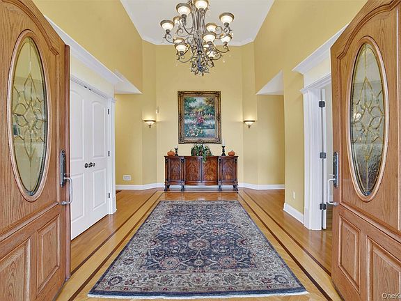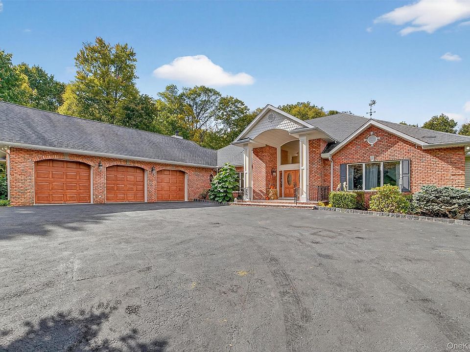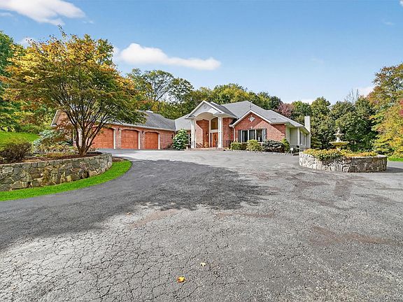 A long driveway leads to this custom-built sprawling ranch set on a secluded 16-acre parcel with unmatched privacy. As you approach this solid brick front home your eyes are drawn to the huge portico entrance. Step inside to an inviting two-story entryway w/parquet wood flooring, open to living room w/tray ceiling and leading to spectacular oversized kitchen with all the bells and whistles. Stunning cherry kitchen cabinets, granite countertops, Viking island cooktop, side by side Sub Zero refrigerator & freezer, Thermador double convection oven and 2 draw wine cooler. The kitchen opens to a great room w/high ceilings, built-in entertainment cabinetry and a propane gas fireplace. Sliding glass door exits out back to huge composite deck w/overhead vine covered trellis. The primary bedroom suite features luxurious bathroom with whirlpool tub, double sink vanity, his & her walk-in closets. Three additional oversized bedrooms, one converted to office w/custom build in cabinets. The walk-out lower level opens to endless possibilities: a recreation room game room, dance studio, gym, or simply space for storage. Brand new HVAC System 2024. Poured concrete walls with 9 ft ceilings, a wine cellar, multiple oversized windows, central vacuum and dual 275 gal above ground oil tanks. Original builder/owner planned a separate entry to basement for a legal accessory apartment with its own private entrance. Don't miss this rare opportunity to own a distinguished residence in one of Westchester’s premier areas.