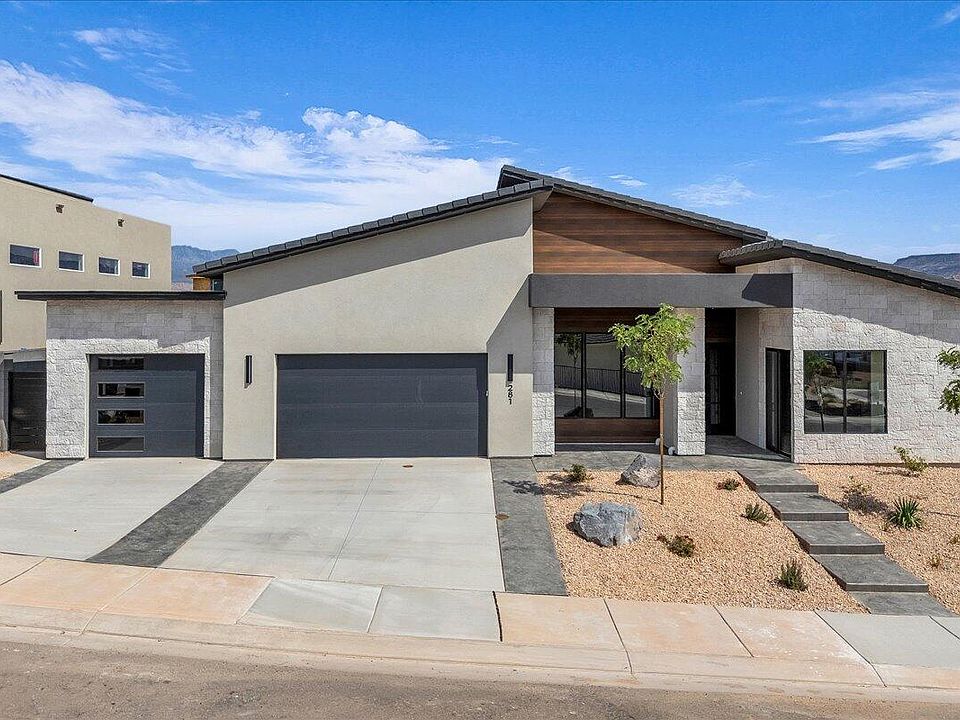Welcome to your dream home just 35 minutes from Zion and 20 minutes to Sand Hollow! This brand-new build showcases stunning upgrades including expansive picture windows, a kitchen hutch, upper cabinets, and modern lighting. Enjoy breathtaking sunrises from the open kitchen, dining, and great room with views of the Virgin River bridge and surrounding mountains. A full casita with its own kitchen and washer/dryer offers privacy for guests or long-term stays. Double sliding doors lead to a spacious covered patio, and with the backyard pre-plumbed for a pool, you can create the perfect oasis to match the view.