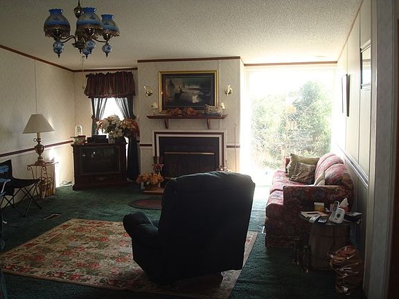 This is a spacious manufactured home for a young family who wants space and privacy or for the weekend owner for that quite get-away. The rooms are very large and spacious with beautiful mountain views across the entire back of the home. There is a well equipped kitchen, spacious with built-ins and large enough for a good sized dinning/ breakfast area. There is also a counter island for additional seating. and work space. Pantry and "mud room" area are off the kitchen. There are three very good sized bedrooms and two full baths in this spilt floor plan. This home is being sold with most of the furniture remaining. Across the front of the home is a porch that is approximately 80 feet in length and provides much additional covered areas for the house. There is a free-standing aluminum 2 car garage